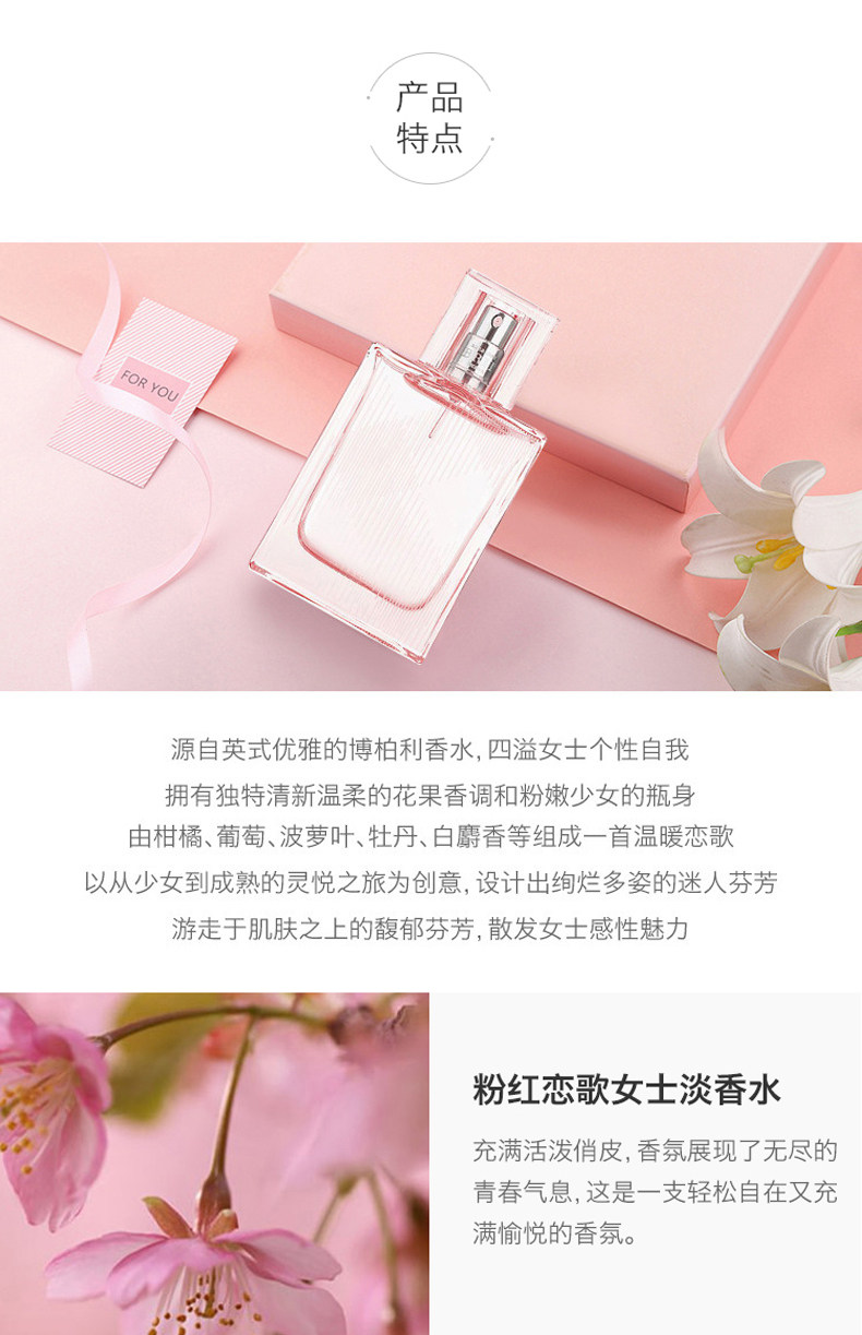 【跨境】英国 BURBERRY 巴宝莉 红粉恋歌女士香水 EDT 30ML
