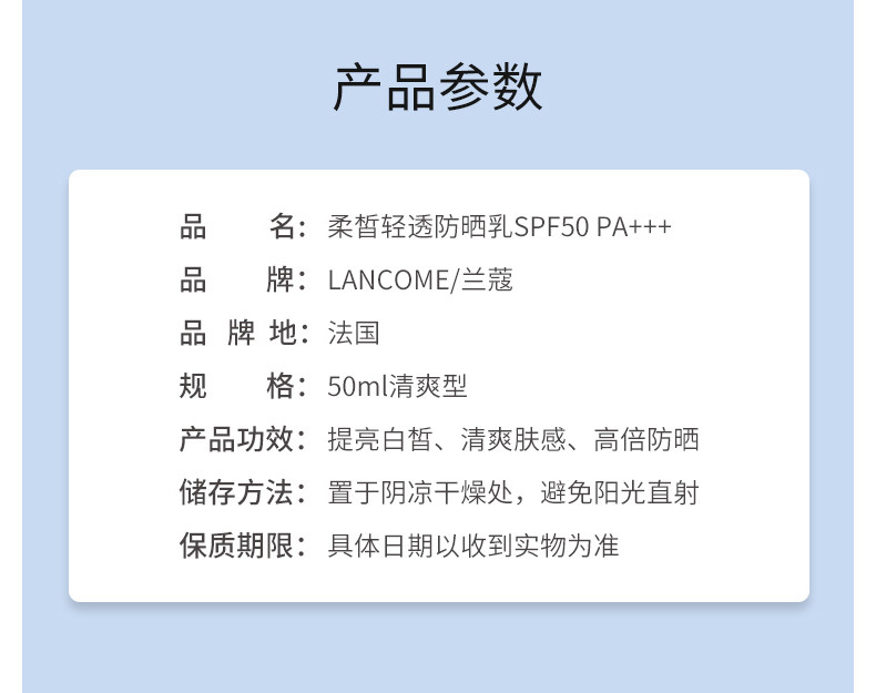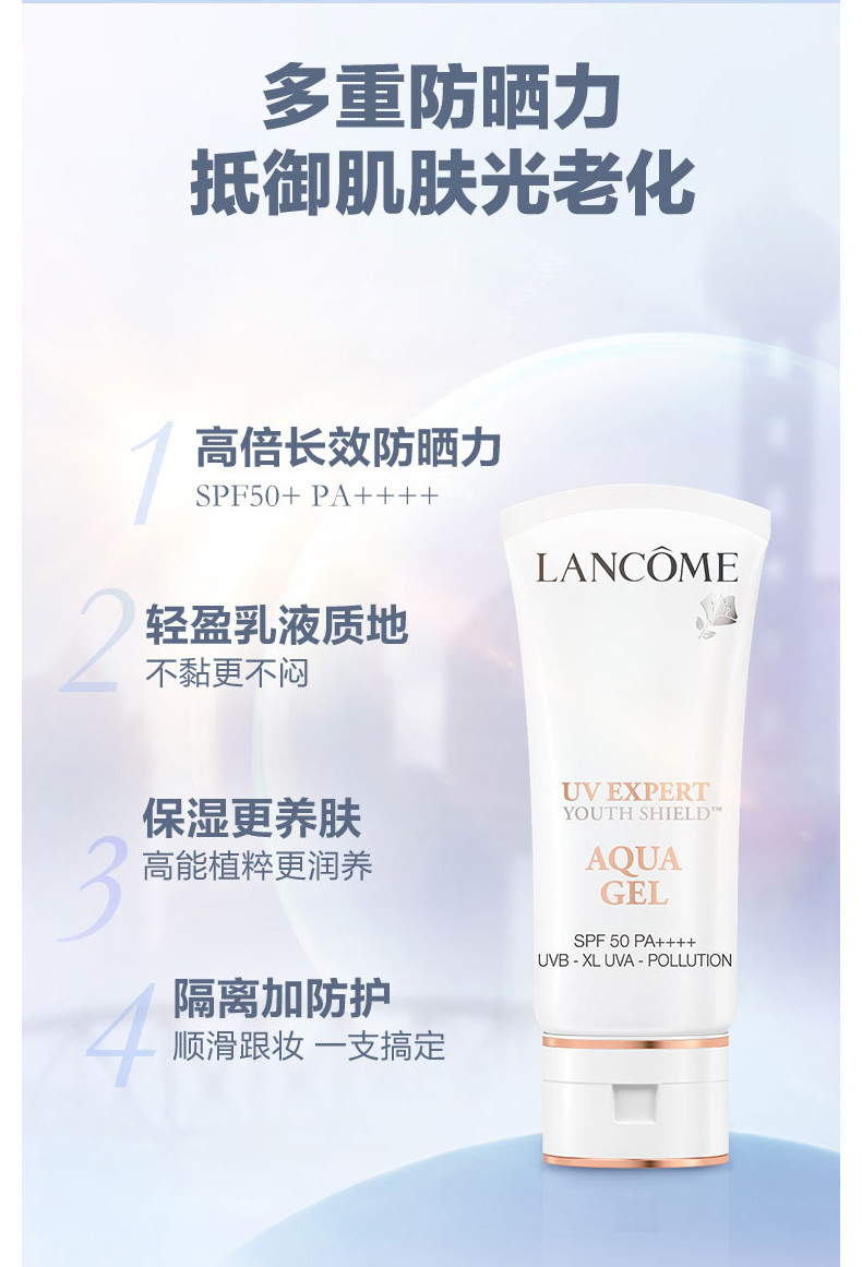 【跨境】法国 LANCOME 兰蔻 19版 柔皙轻透防晒乳SPF50 PA++++ 清爽型 AQUA GEL 50ML