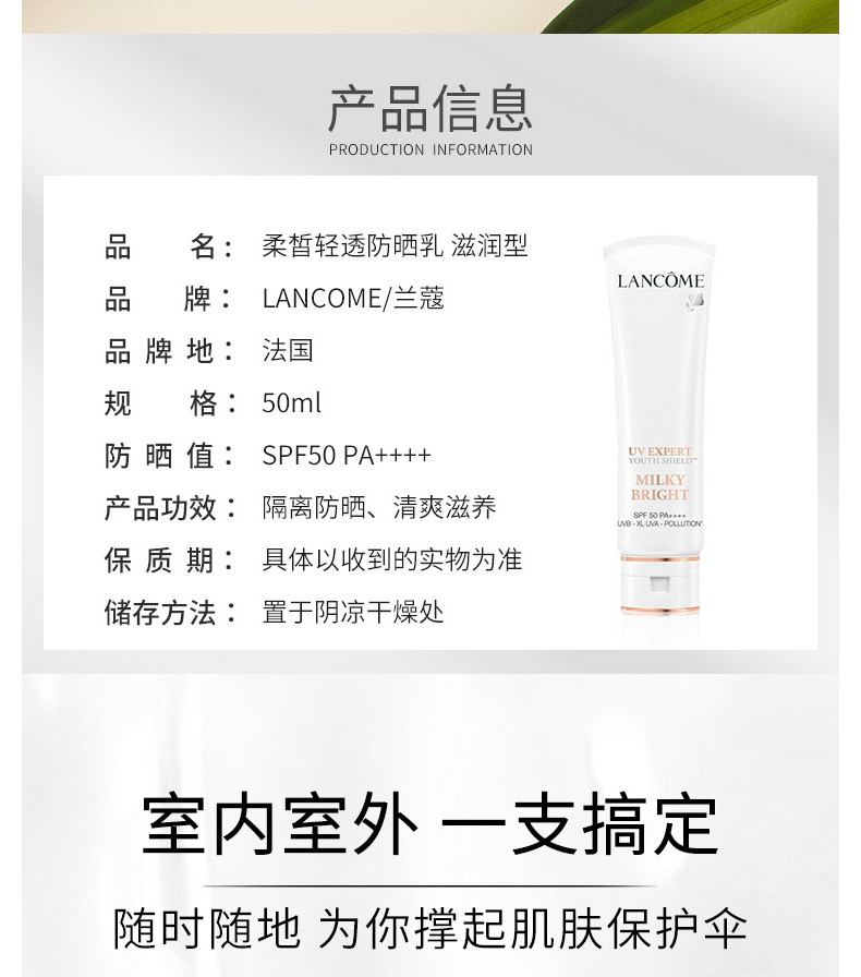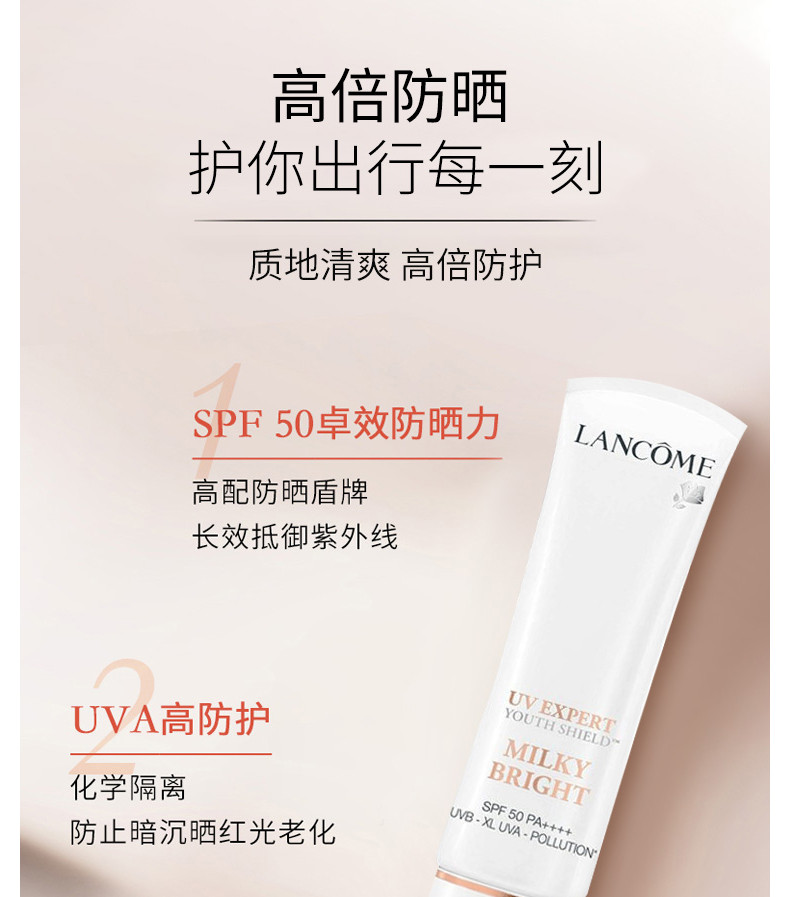 【跨境】法国 LANCOME 兰蔻 19版 柔皙轻透防晒乳SPF50 PA++++ 滋润型 MILKY BRIGHT 50ML