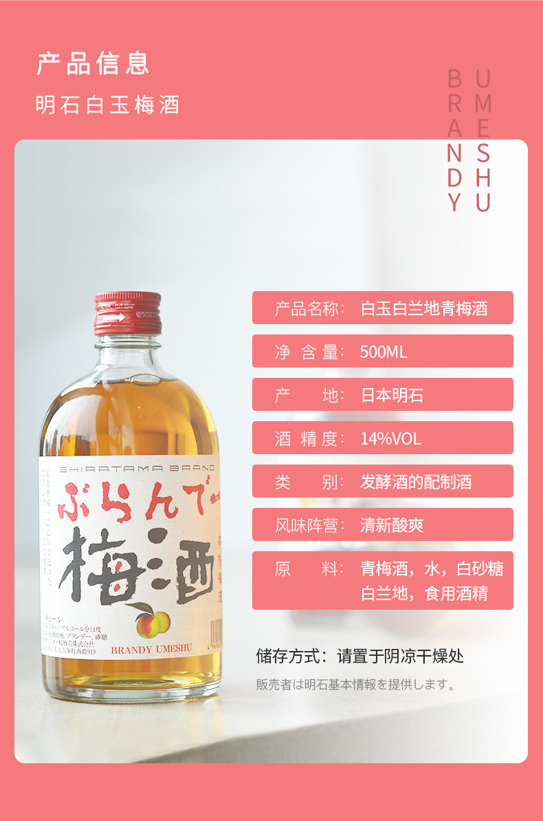 【体验】AKASHI明石/SHIRATAMA RED WINE UMEHSU 白玉红酒梅酒500ml