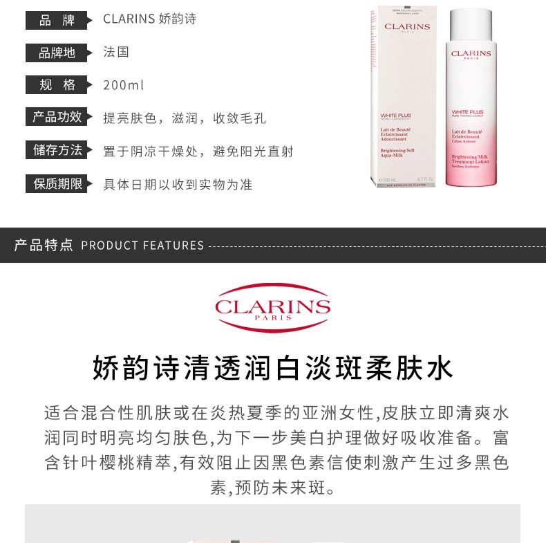 【跨境】法国 CLARINS 娇韵诗 清透美白爽肤水 200ML 滋润型