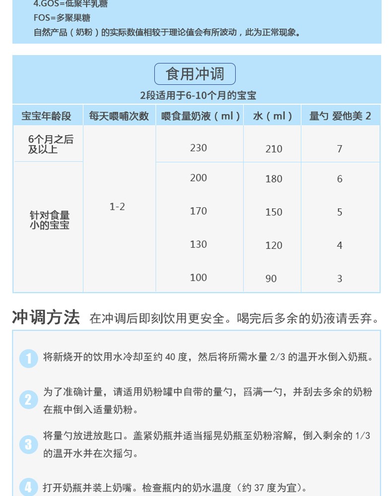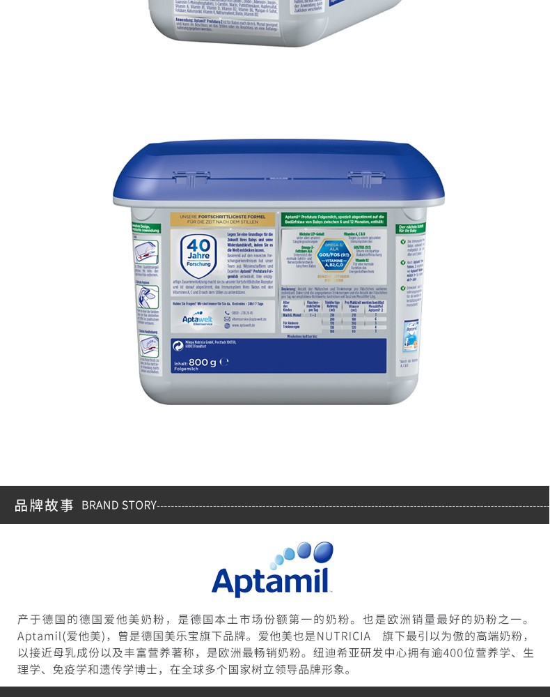 【跨境】德国爱他美婴幼儿奶粉白金版 2段 6-10个月 800G