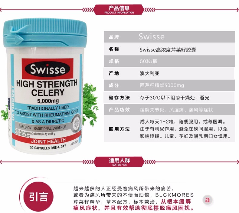 【跨境】SWISSE/瑞思 CELERY芹菜籽西芹籽胶囊 50粒
