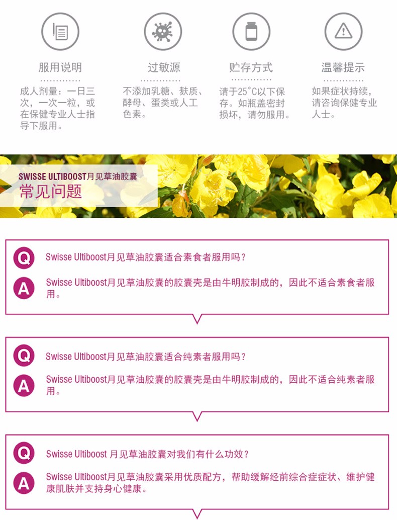 【跨境】SWISSE/瑞思 月见草胶囊 200粒