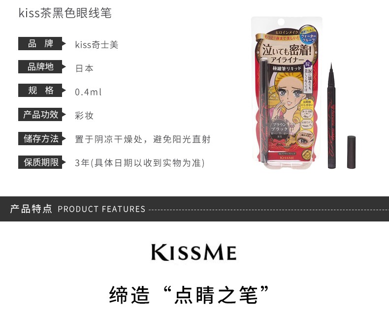 【跨境】日本 KISS ME 奇士美 梦幻泪眼液体防水眼线笔 茶黑色