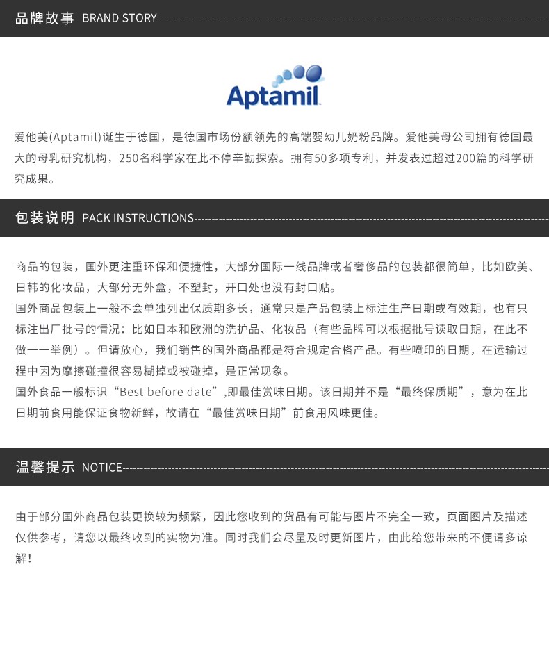 【跨境】德国爱他美婴幼儿奶粉白金版1段新包装800g