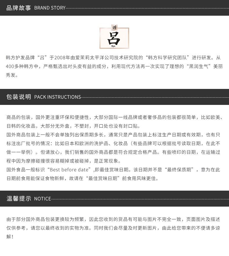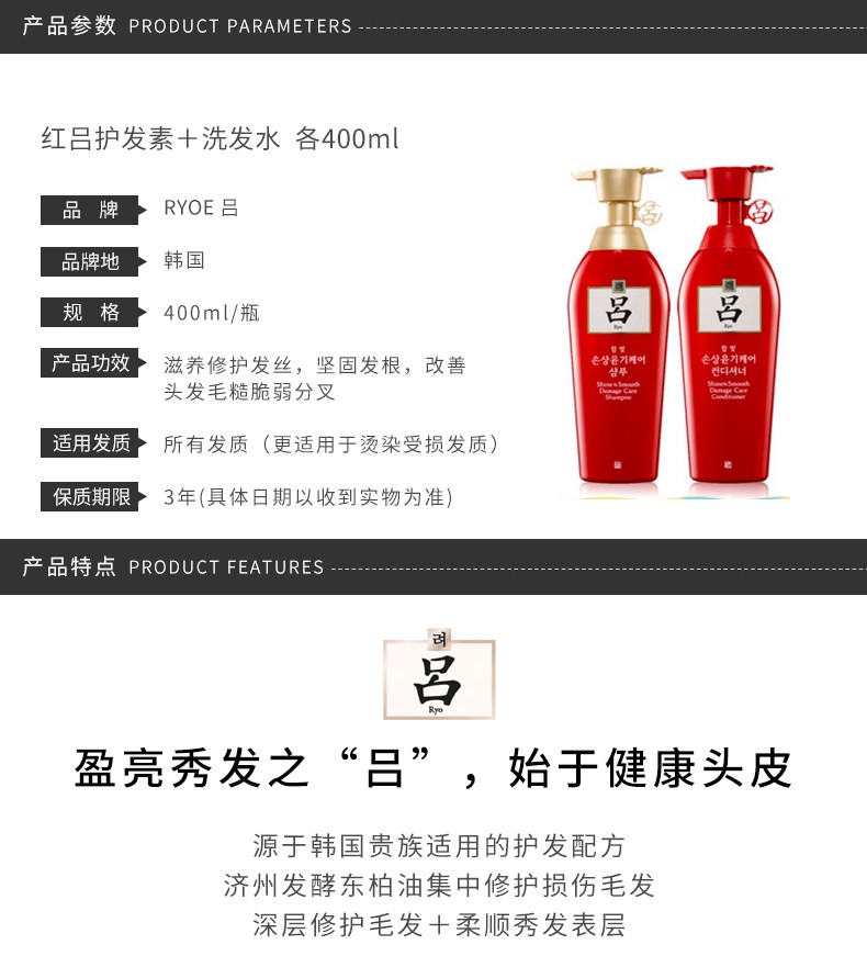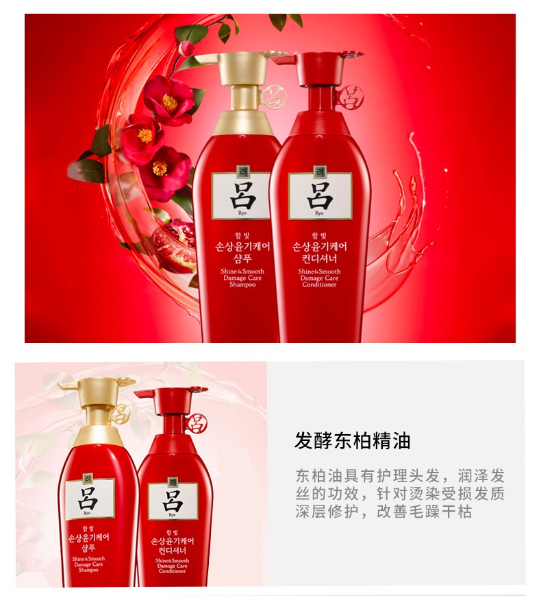 【跨境】韩国 RYOE 吕 黑吕含光耀护损伤修护洗发水 400ML + 护发素 400ML 组合装(新老版本随机发货)