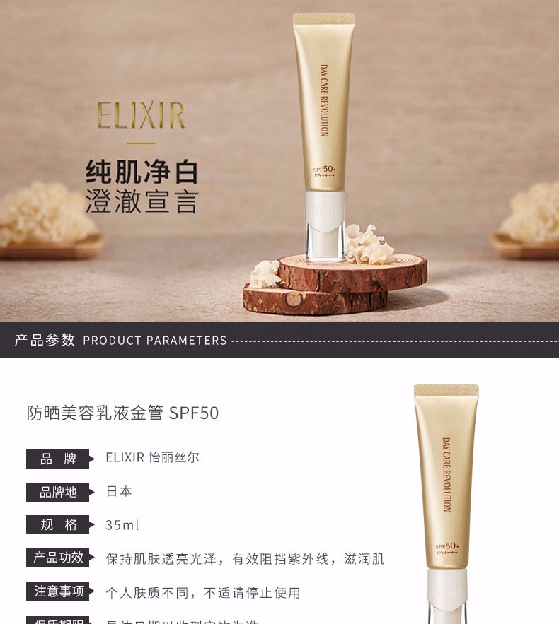 【跨境】日本 ELIXIR 怡丽丝尔 防晒美容乳液金管 SPF50(新老版本随机发)