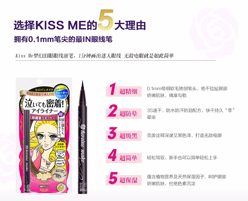 【跨境】日本 KISS ME 奇士美 梦幻泪眼液体防水眼线笔 棕色 0.4ML